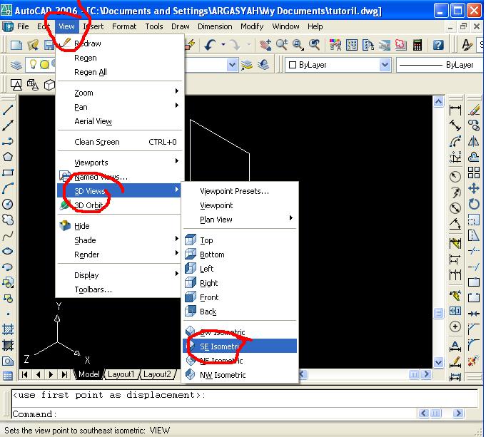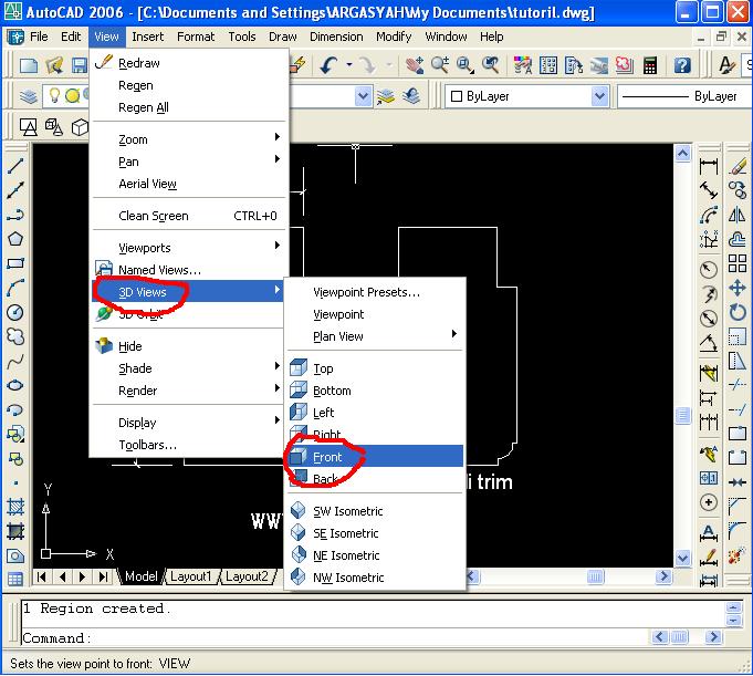 3. Tampilakan dalam tampak depan, pilih view 3d views – front